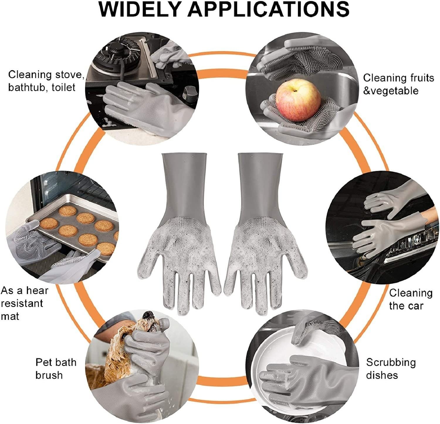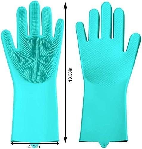 Reusable Silicone Magic Washing Gloves Pair with Scrubber for Kitchen,